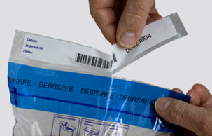 DEBASAFE®agriculture Sicherheitstaschen kommen überall dort zum Einsatz, wo Rückstellmuster im Lebensmittel- und Tierfutterbereich sowie Proben sicher aufbewahrt werden müssen. Das selbstklebende blaue Siegelband verschließt Proben zuverlässig und absolut sicher, jeder Versuch, die Tasche durch mechanische, thermische oder chemische Manipulationen zu öffnen, wird angezeigt.