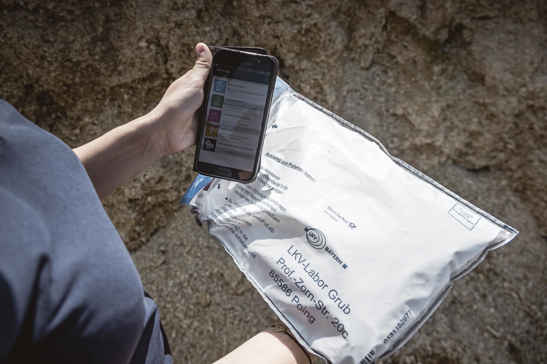- Anpassung der Probentasche auf die Versandtasche, damit diese vom Bauer auf dem Postweg zum LKVBayern gesendet werden kann.