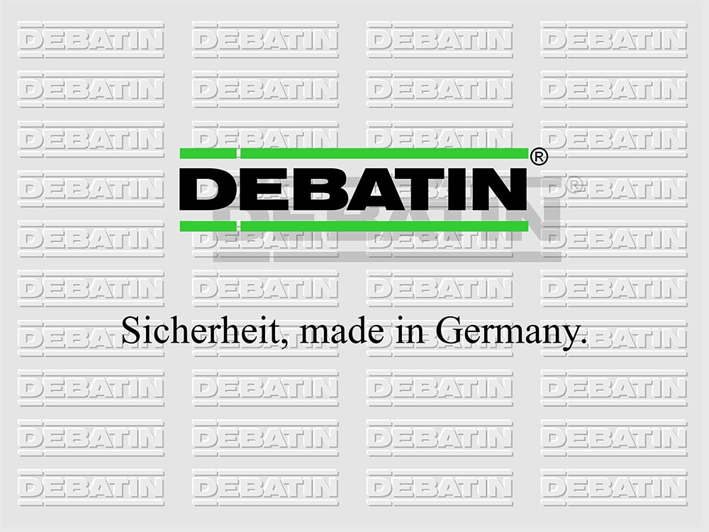 1983 wird das erste richtige DEBATIN Logo entwickelt. Stark und neutral, noch aber auch mäßig lesbar (Buchstaben des Logos wirken als Druckgrafiken auf Faserpapier „zerlaufen”, was bei diesem Verfahren aber völlig normal ist). Als Schriftart wird eine Sans Serif Schrift in Versalien gewählt. Das clevere DEBATIN-Signet von 1988 wird z. B. auf das DEBASAFE® Hologramm-Band aufgedruckt und noch heute in modernisierter Form genutzt.