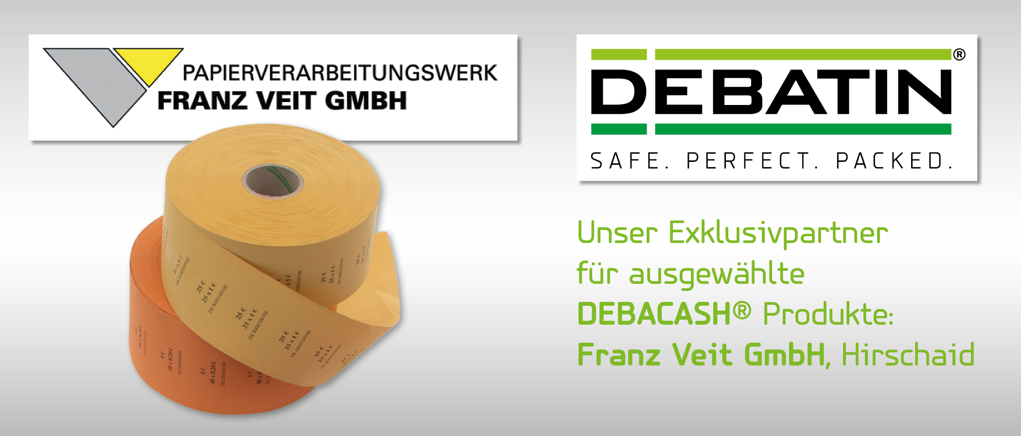 Seit Ende 2018 fertigt und liefert Veit die Streifbandrollen DEBABAND (Produktgruppe DEBACASH®), farblich sortierte Banderolen aus Papier für Banknoten aus FSC®-Papier für die Anton Debatin GmbH. Veit und DEBATIN sind gegenseitige Exklusivpartner für ausgewählte Produkte. So liefert Veit außerdem bei Bedarf Thermopapier/Scannerrollen (Kassenbonpapier) an DEBATIN.